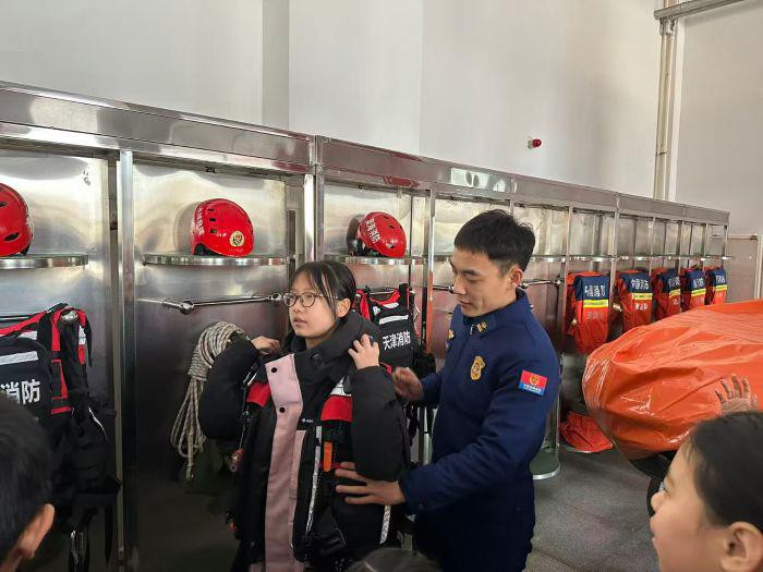 津滨海讯(记者杨婷婷)2月3日,汉沽街道贾园里社区联合滨海新区消防救援支队汉沽大队组织辖区青少年走进消防队,开启了一场“消防站内学本领少年心中植安全”实践之旅。通过消防车探秘、战斗服穿戴、逃生演练等特色环节,孩子们在沉浸式体验中不仅读懂了“责任”与“勇敢”的分量,更将“做好文明有礼天津娃”的信念融入实践,展现出新时代青少年的良好风貌。